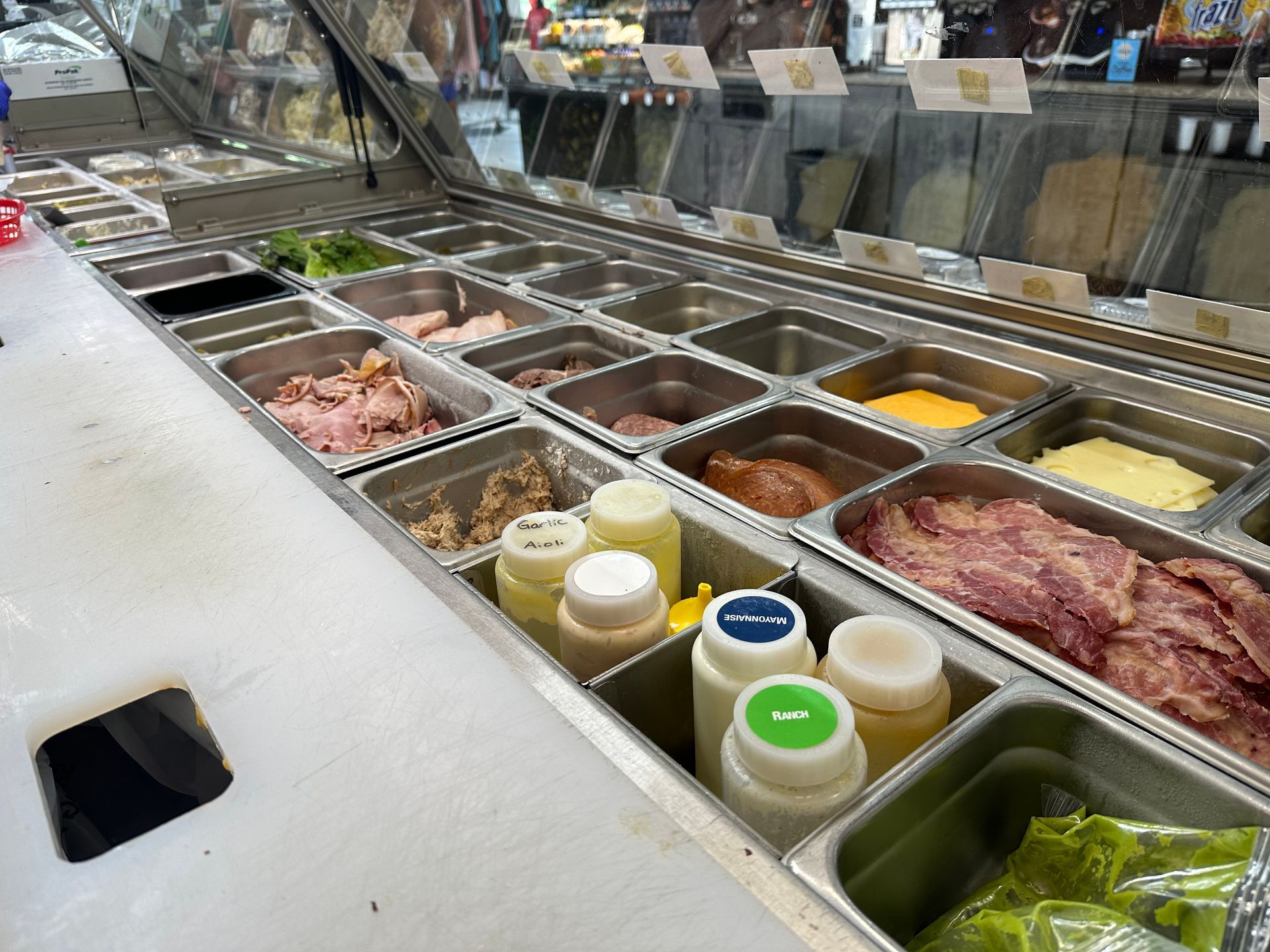 Garlic Summer Sausage Provolone Cheese, Lettuce, Mayo on a French Sub Bun